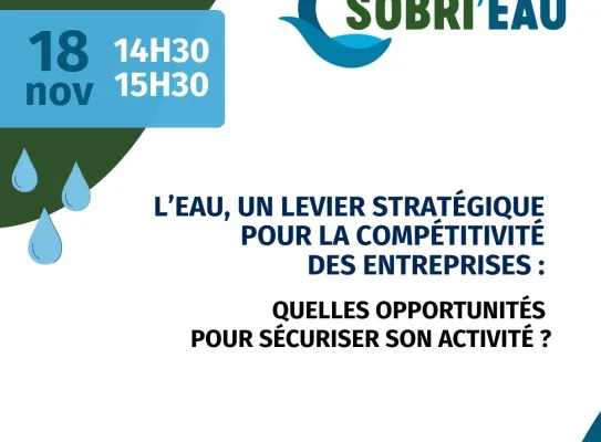 Pour accompagner les entreprises dans cette transition, le réseau des CCI Occitanie, en partenariat avec les Agences de l’eau et la CCI Nouvelle-Aquitaine, propose un webinaire dédié à la sobriété hydrique, le 18 novembre 2025 de 14h30 à 15h30.
